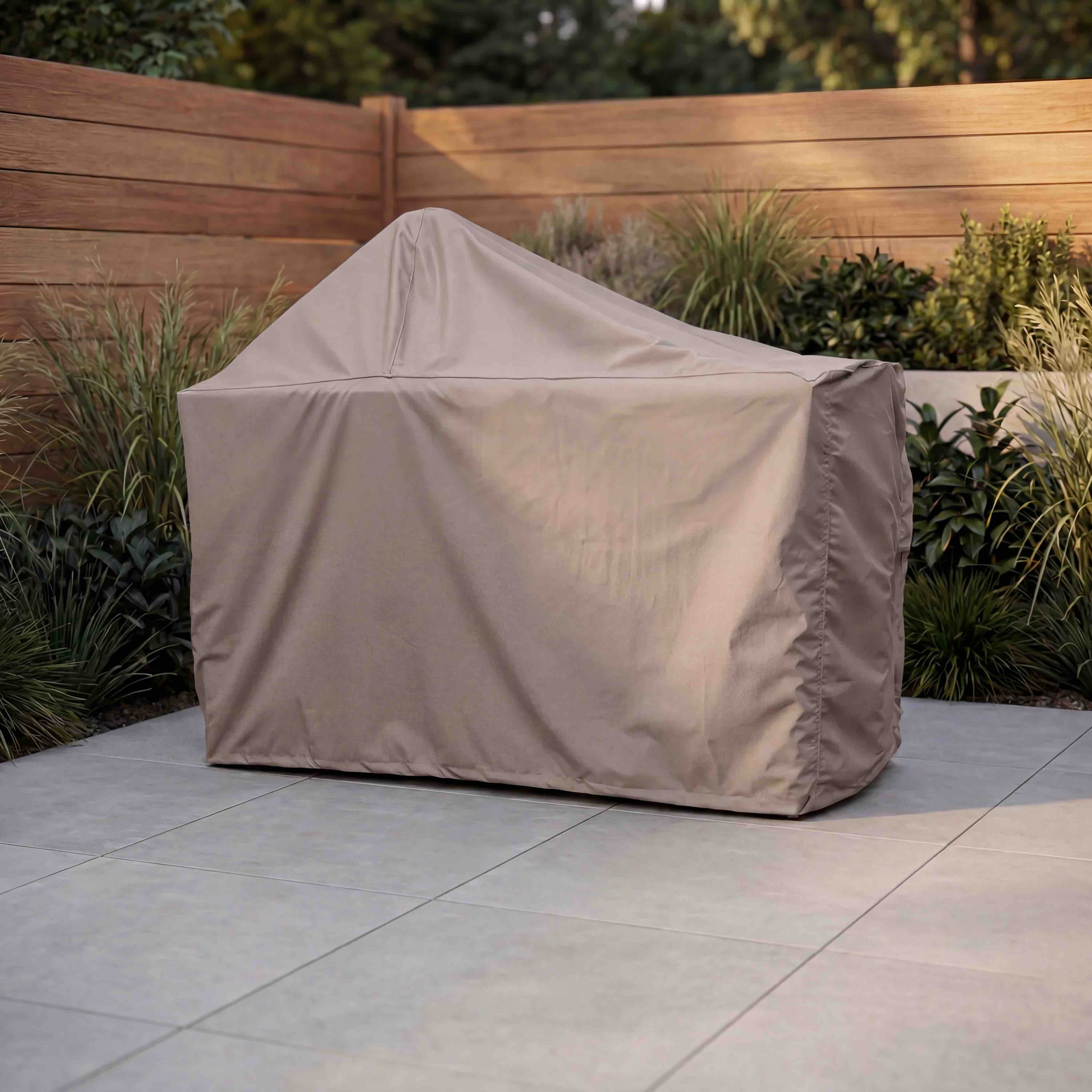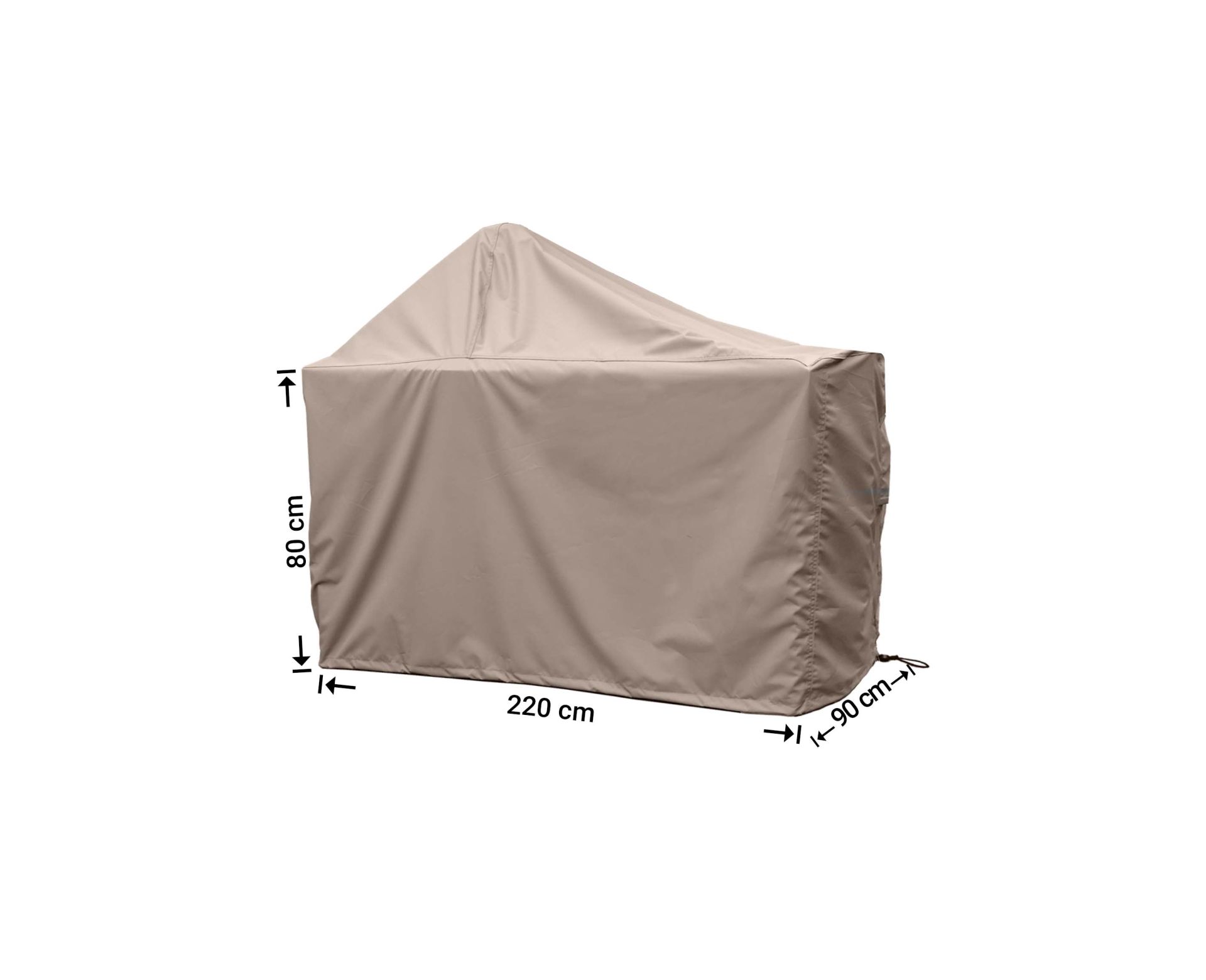 The lower edge of the cover is adjustable, allowing it to be pulled snugly around the table and reducing the risk of it blowing up in the wind. Padded handles make putting the cover on and taking it off comfortable, while the supple fabric is easy to handle yet feels reassuringly robust. After use you can store the cover in the supplied storage bag. If your outdoor kitchen is in an exposed, windy spot, you can additionally secure the cover with accessories such as sandbags, bungee cords, elastic straps or clamps.