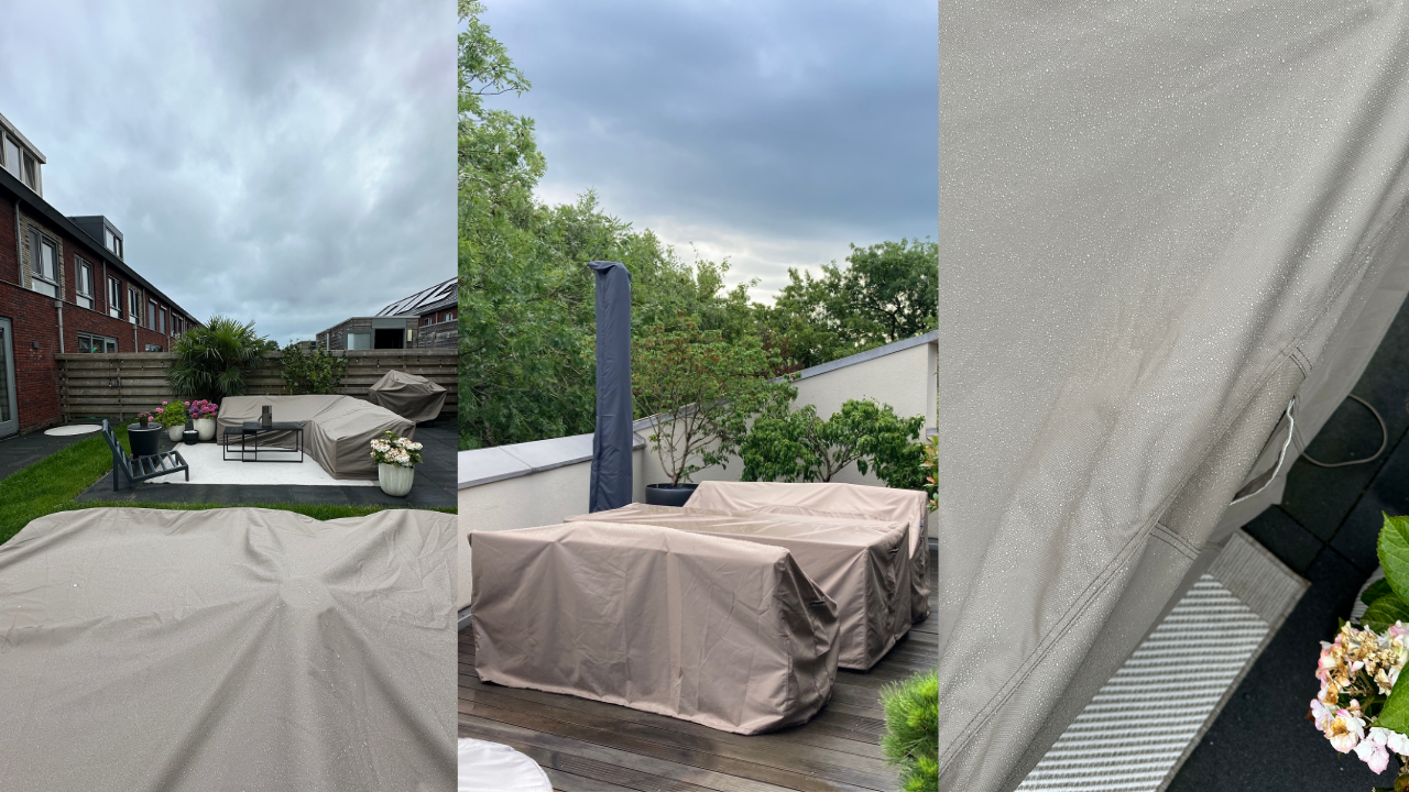 Keep your garden furniture cover in place: smart tips with drawstrings, sandbags and clamps against strong winds.
